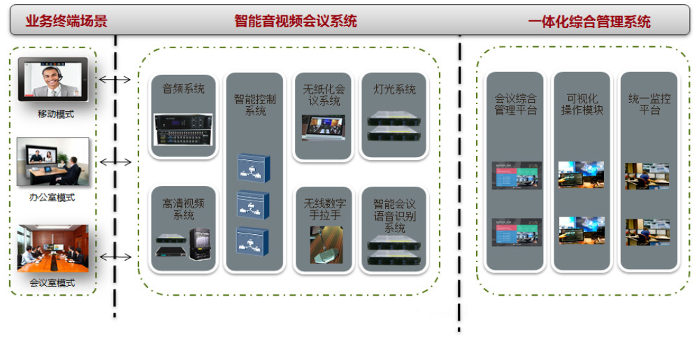 ▌智能(néng)化-智能(néng)中控、智能(néng)燈控、智能(néng)語音(yīn)識别和(hé)智能(néng)會(huì)管平台共同爲企業(yè)打造智能(néng)化的(de)視頻會(huì)議室,簡化開(kāi)會(huì)流程,提高(gāo)會(huì)議流暢度